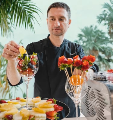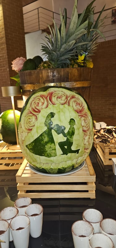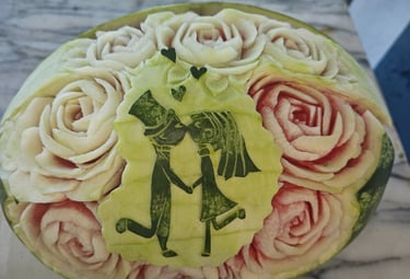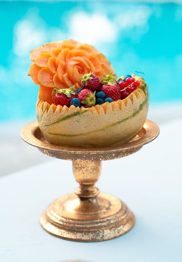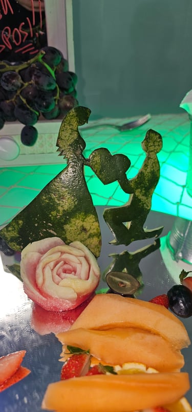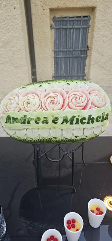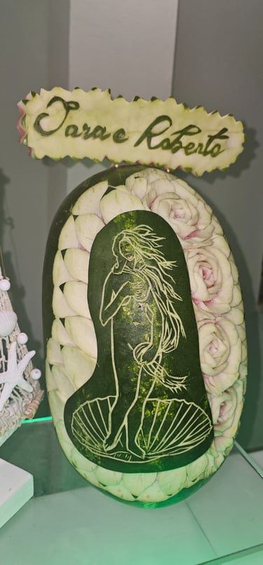 Servizio di Fruit Art a domicilio, i tuoi Personal Chef trasformano la frutta fresca in opere d' arte per i tuoi eventi. Intagli e composizioni artistiche a casa o dove decidi tu.