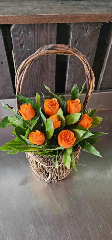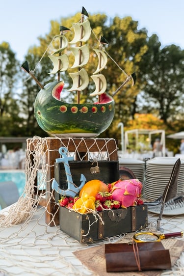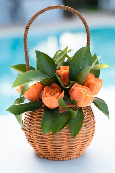 Creiamo decorazioni uniche con frutta e verdura per eventi indimenticabili e buffet scenografici.