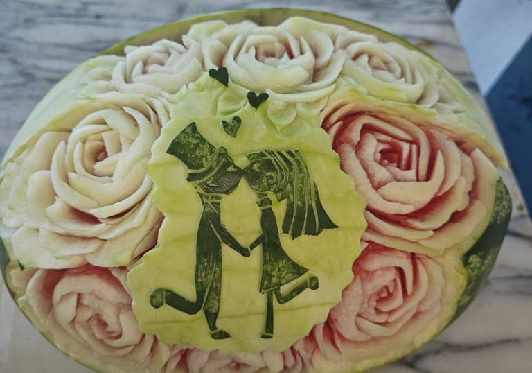Le decorazioni di Alessio hanno reso il nostro matrimonio indimenticabile. Frutta e verdura artisticamente lavorate!