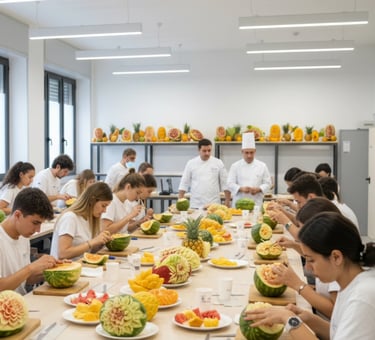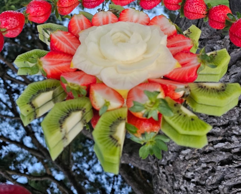 Creiamo decorazioni uniche con frutta e verdura per eventi indimenticabili e buffet scenografici.