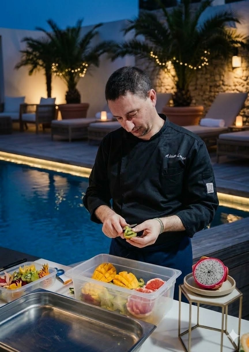 In qualità di Fruit Chef, la sua missione è trasformare i frutti della terra in sculture effimere capaci di generare un autentico "effetto WOW". Le sue creazioni non sono semplici decorazioni, ma esperienze immersive: