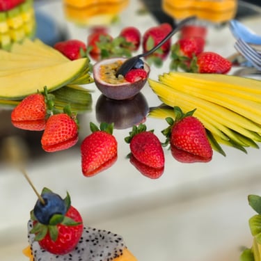 Degustazione Dinamica: Servizio della frutta appena tagliata e preparata, garantendo il massimo della freschezza.