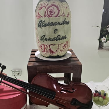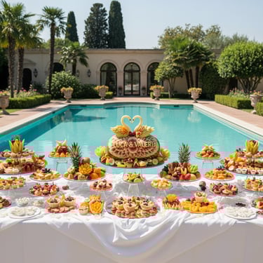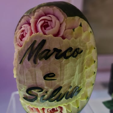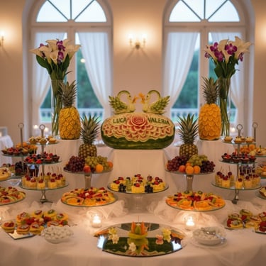 Questo pacchetto nasce per gli sposi che desiderano un matrimonio unico, dove ogni dettaglio parla di loro. Non un semplice buffet, ma un’installazione artistica interamente modellata sul tema del vostro evento.Che si tratti di musica, letteratura, natura o di un viaggio speciale, l'artista Alessio Lanaro progetta l’intero allestimento affinché la frutta diventi il linguaggio narrativo della vostra unione. Attraverso la tecnica dell'intaglio e una scenografia dedicata, il buffet si trasforma in un elemento scenico coerente con il mood del matrimonio.Il fulcro dell'opera è la personalizzazione tematica: i frutti vengono scolpiti non solo con motivi decorativi, ma con simboli, icone e riferimenti che richiamano il fil rouge scelto per le nozze, creando un legame profondo tra estetica e significato.L’esperienza diventa interattiva grazie al racconto di come ogni scelta cromatica e varietale si sposi con il tema scelto, offrendo agli ospiti un’immersione totale in un mondo dove la natura diventa design.
