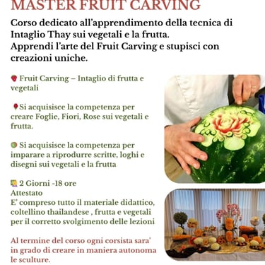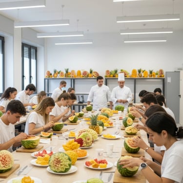 Fruit Carving Masterclass: Tecniche di intaglio professionale su frutta e vegetali.