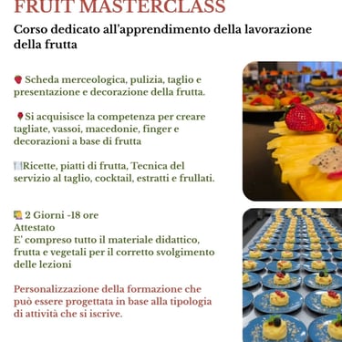 Entra nel mondo della formazione professionale con l'Accademia Chef della Frutta con Alessio Lanaro. Questo pacchetto non è un semplice corso, ma un’esperienza esclusiva pensata per chi vuole trasformare il prodotto ortofrutticolo in pura arte e business.